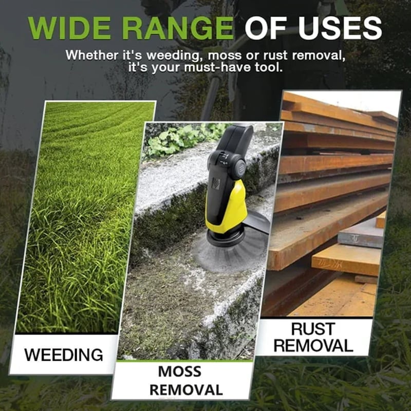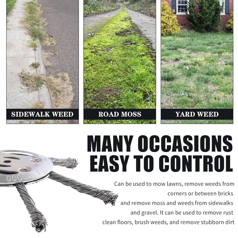 The steel wired trimmer blade head can be used to mow lawns, Especially remove weeds in corners or between bricks, clean moss on sidewalks, and remove weeds on sand and gravel. Can be used to remove rust, moss, clean floors, brush weeds for gardens, sidewalks, courtyards, parking lots, and so on.